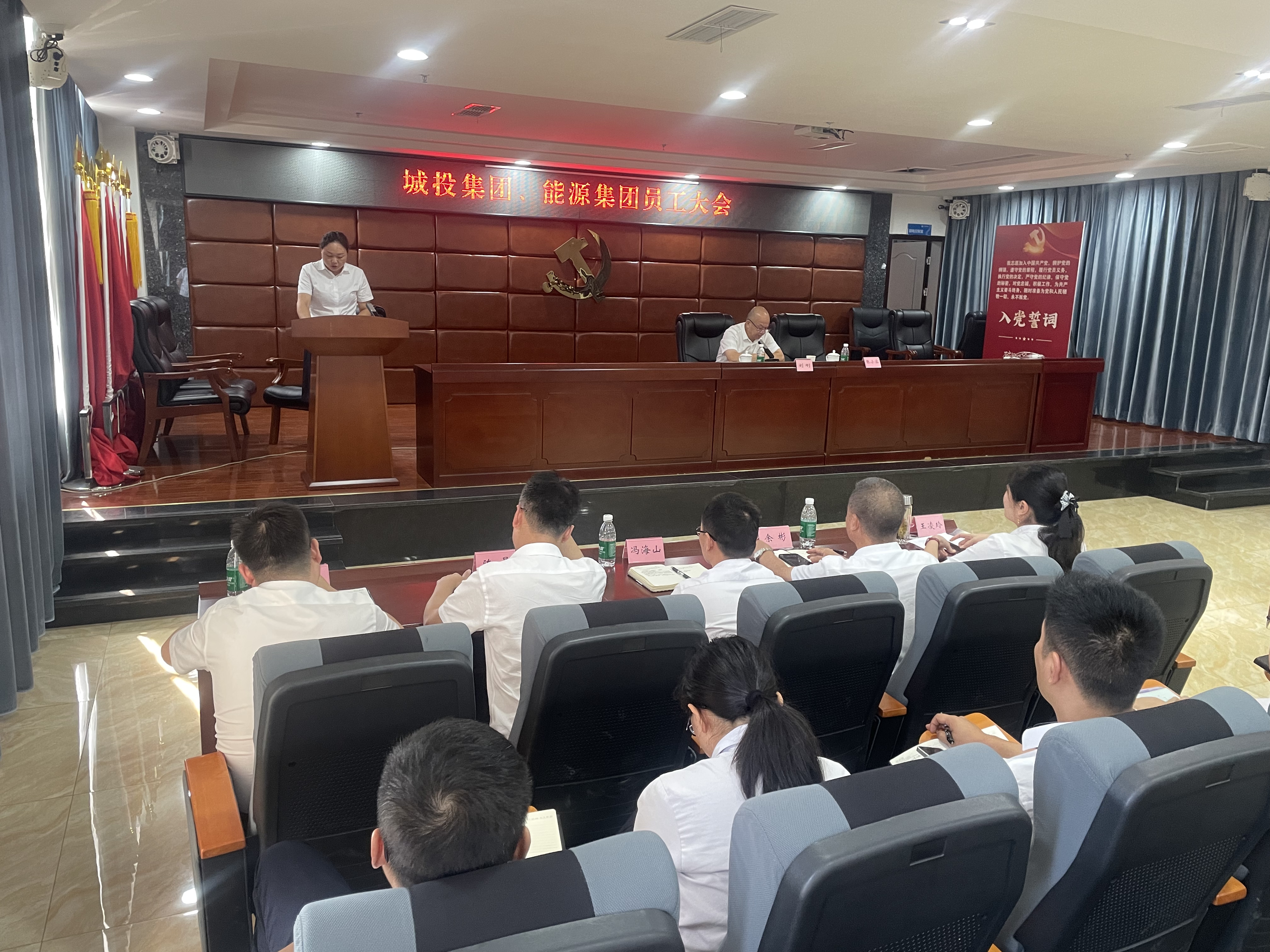 9月27日下午,集團(tuán)公司副總經(jīng)理劉剛主持召開(kāi)城投集團(tuán)、能源集團(tuán)員工大會(huì),近80名員工參加會(huì)議。會(huì)議傳達(dá)了集團(tuán)管理體系改革通知文件精神,宣讀了人事任免文件,城投、能源集團(tuán)公司正、副職經(jīng)理依次進(jìn)行任職發(fā)言。會(huì)議強(qiáng)調(diào),全體職工要融入集團(tuán)改革發(fā)展大局,居安思危,主動(dòng)擔(dān)當(dāng)作為,抓好安全環(huán)保工作,養(yǎng)成廉潔自律的工作作風(fēng),以新姿態(tài)攻堅(jiān)克難,為順利完成2024年目標(biāo)任務(wù)而努力奮斗。